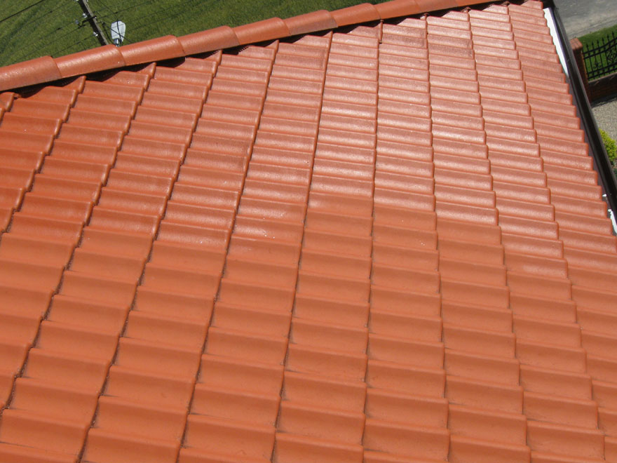 Efekt zaimpregnowania dachówki - nasycenie koloru, oraz delikatny połysk.